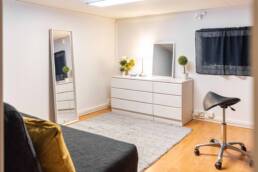 Studion yhteydessä on siistit wc- ja suihkutilat.